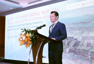 image00520231102221141 Published 05/12/2023 at 1000 × 688 in Tập đoàn Lạc Việt và đơn vị quản lý vận hành khách sạn hàng đầu thế giới Accor công bố hợp tác chiến lược Ông Tống Đức Hiếu – Chủ tịch HĐQT Tập đoàn Lạc Việt phát biểu tại lễ ký kết hợp đồng hợp tác. ← Previous Next →